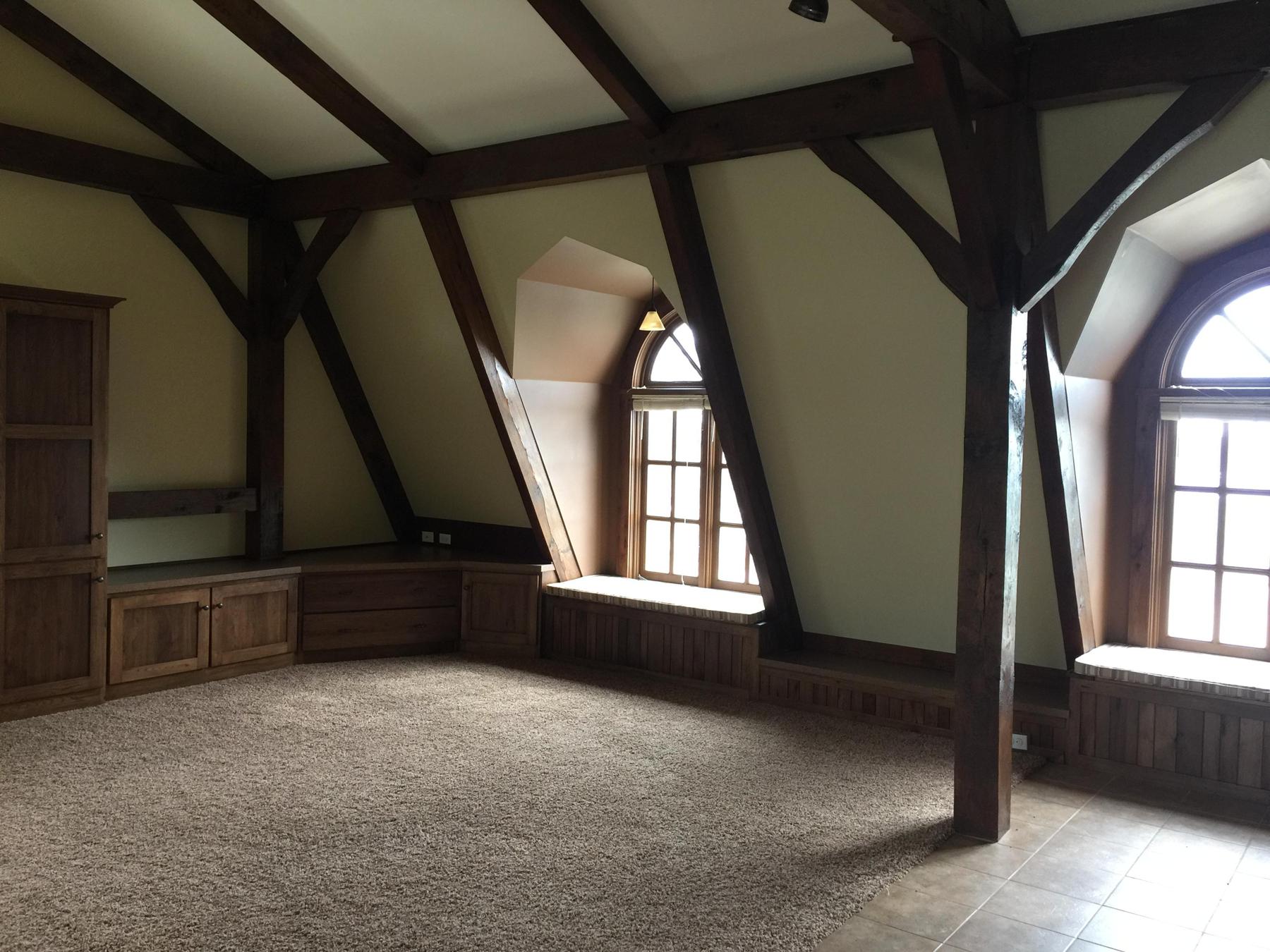 Spacious living areas feature massive oak beams, heated floors, tiled showers, custom cabinets and millwork.